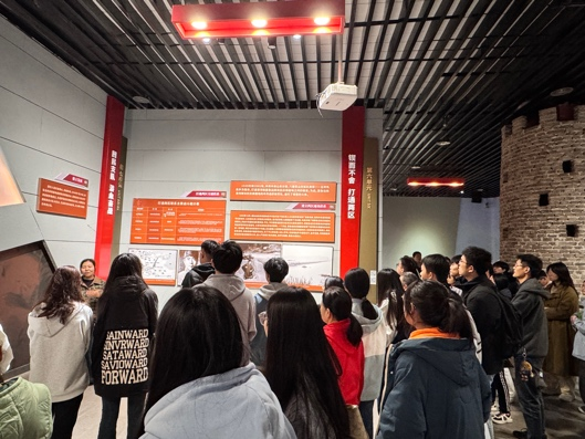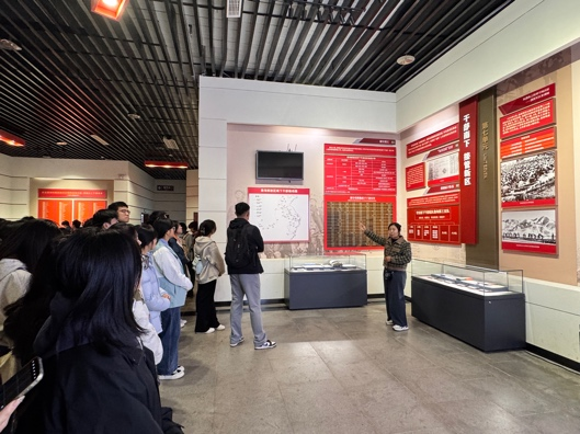 参观过程中,中国近现代史纲要教研室刘俊老师结合课程中“抗日战争的中流砥柱”章节,在“冀鲁边党组织领导抗战”展区现场开课:“大家看这张1938年的党员名册,当时冀鲁边每一个党支部都是一个战斗堡垒,正是中国共产党始终坚持抗战、团结群众,才带领边区军民守住了这片土地。”生动的讲解让课本知识变得鲜活,学生们围在展柜旁,听得格外专注。